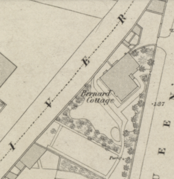 The stone mullions and tall ornate diamond chimney pair suggest the building is much older than the date of the map, and was erected well before the area was a highway dominated fringe of the city centre.